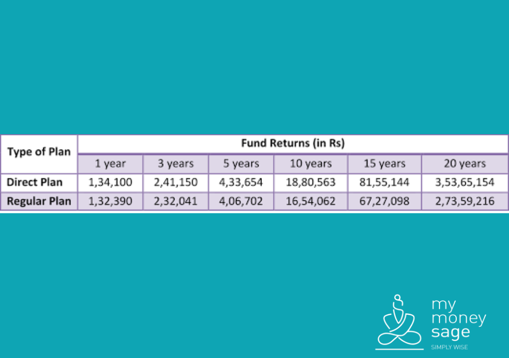 It implies that regular plans give you lower returns while charging a higher cost. Hence, as a rational investor, you may go for a direct plan which provides higher returns at a lower cost.