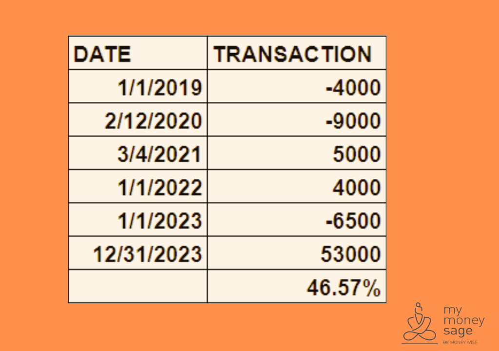 But usually, investments are not as evenly spaced as you saw above. Especially, in the case of mutual fund investments, you tend to invest and redeem investments at irregular intervals. It will cause cash inflows and cash outflows at different points in time. In such a scenario, in addition to the amount of investment, the time of such investment also assumes significance to yield certain outcome. You may use the concept of Extended Internal Rate of Return (XIRR).